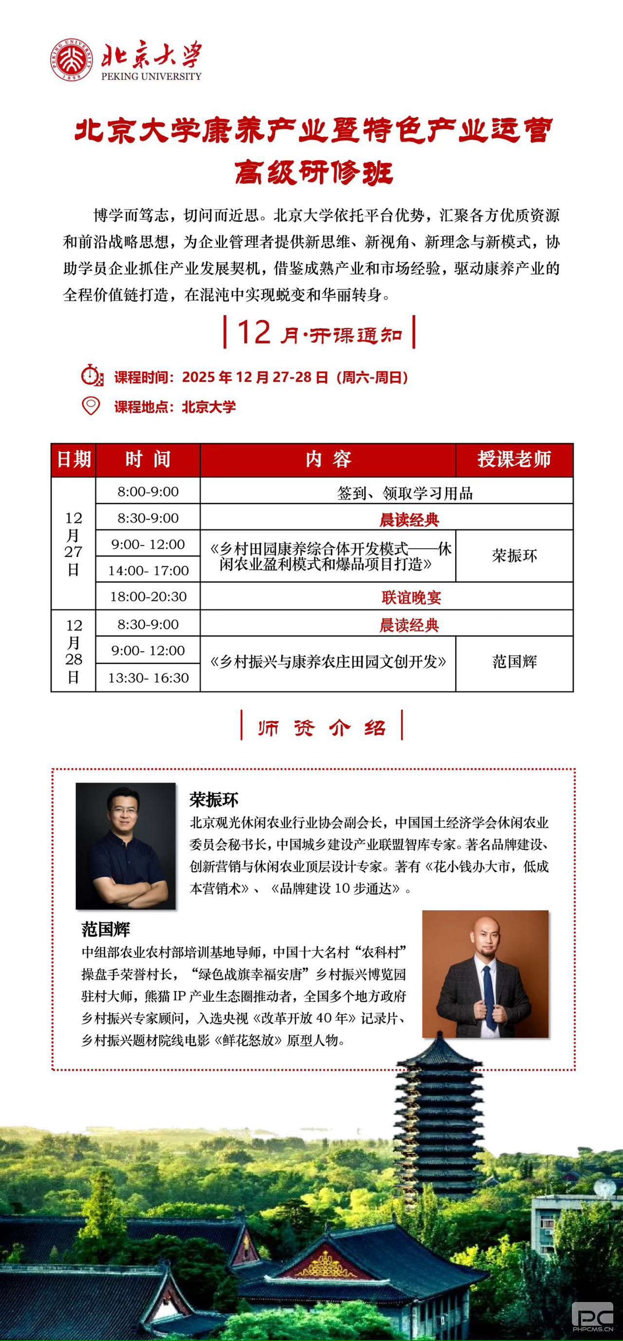 北京大学康养产业暨特色产业运营高级研修班12月份开班通知